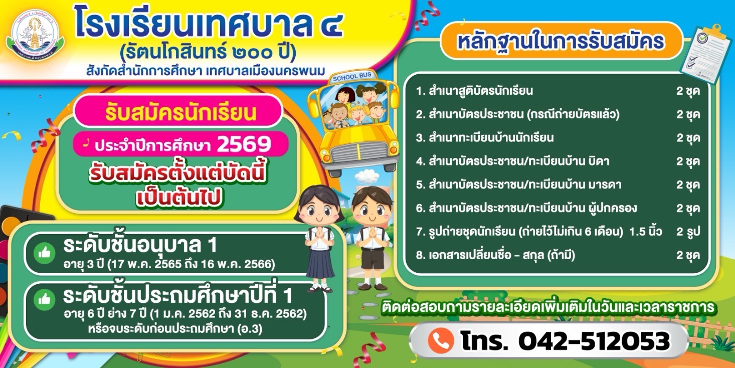 ยินดีต้อนรับเข้าสู่เว็บไซต์ โรงเรียนเทศบาล ๔ ( รัตนโกสินทร์ ๒๐๐ ปี )ค่ะ...